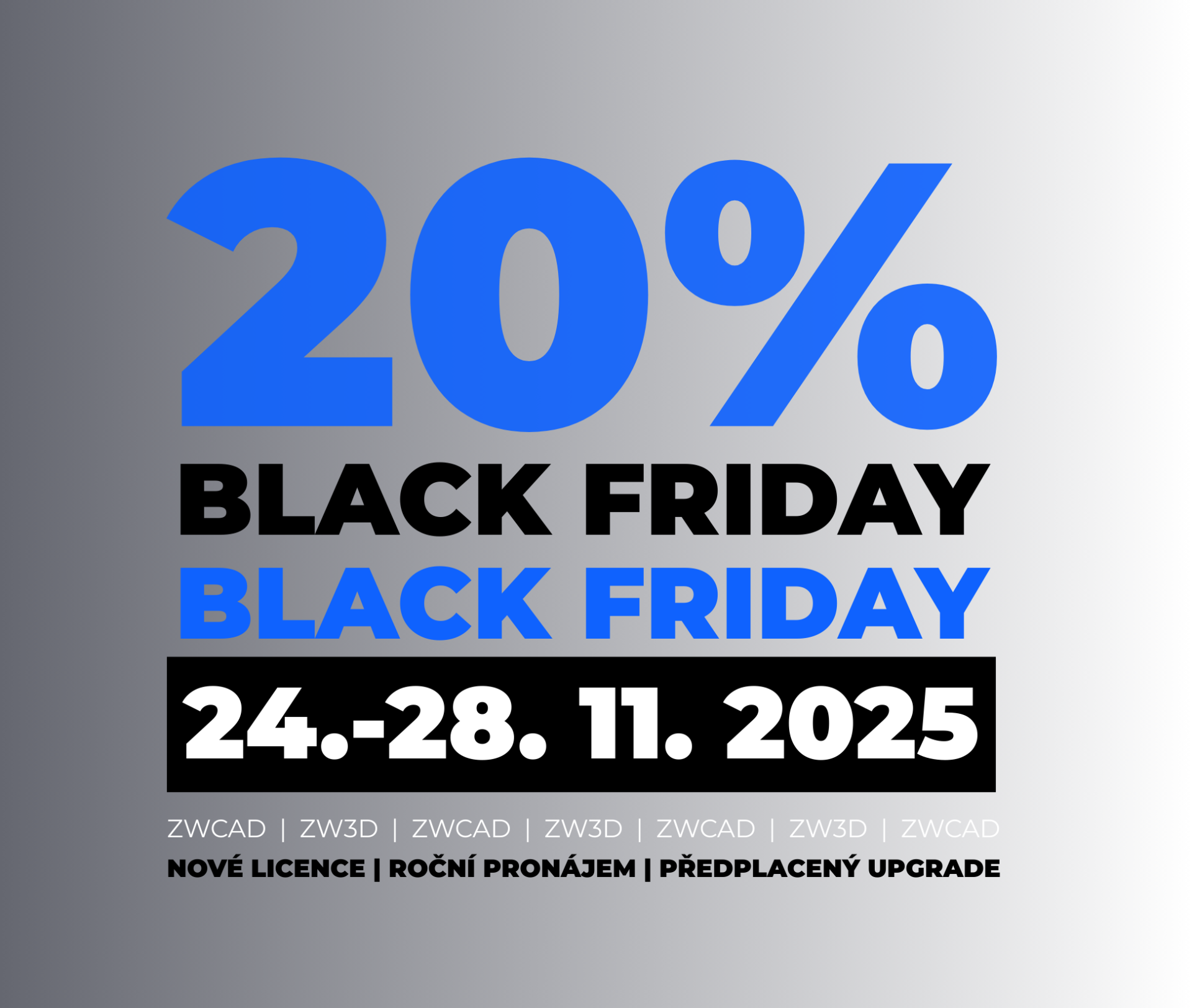 Black Friday je tady a s ním skvělá příležitost pořídit si profesionální CAD/CAM nástroje za výhodnější cenu. ZWCAD i ZW3D jsou nyní se slevou 20 %. Pokud uvažujete o přechodu nebo hledáte nové řešení, teď je ten správný moment.