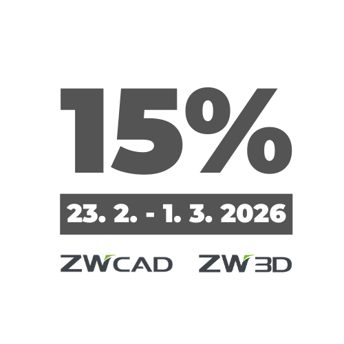 Využijte časově omezenou akci CADFRIDAY a pořiďte si nové trvalé licence ZWCAD nebo ZW3D se slevou 15 %. Ideální příležitost pro firmy i jednotlivce, kteří chtějí přejít na profesionální CAD řešení za výhodnější cenu.